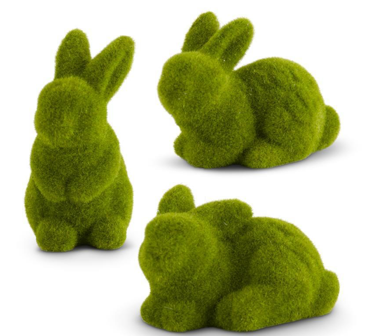 Assorted Medium Green Mossy Flocked Bunnies (3 Styles)